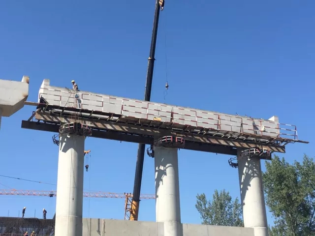 官渡一分部二工区下部结构包括地系梁166道,墩柱498根,中系梁242道,盖梁166片,挡块332个,垫石2412块。