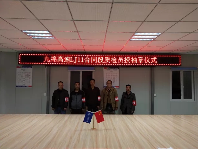 为强化质量管理手段,加强项目质量管理工作,提高全员质量意识,日前,四川九绵高速LJ11标举行协作队伍质检员授袖章仪式,协作队伍负责人、质检员参加。