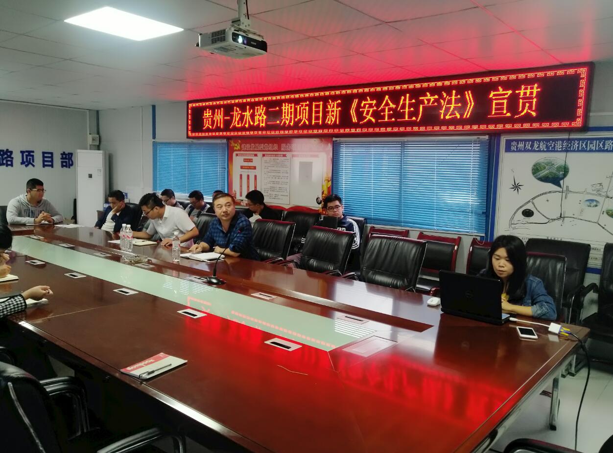 近日,贵州龙水路二期项目组织开展法律一月一主题活动——学习《新安全生产法》,项目全体员工参加会议。