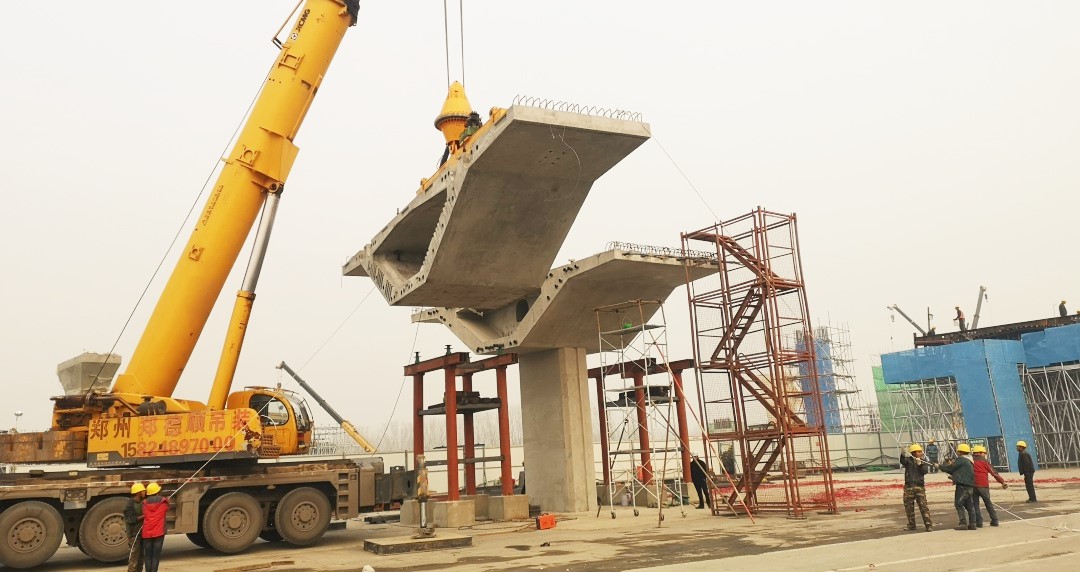 郑州东四环项目金城立交工区首件1#块顺利拼装