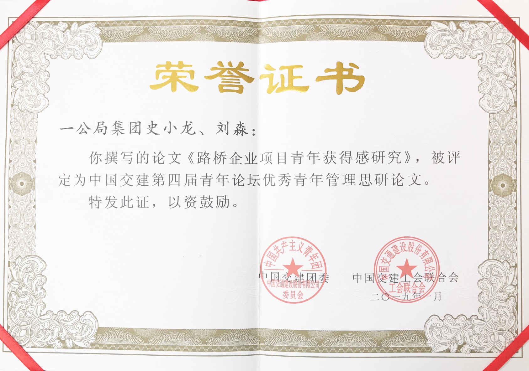 日前,公司团委推送的《路桥企业项目青年获得感研究》获中国交建第四届青年论坛优秀青年管理思研论文表彰。