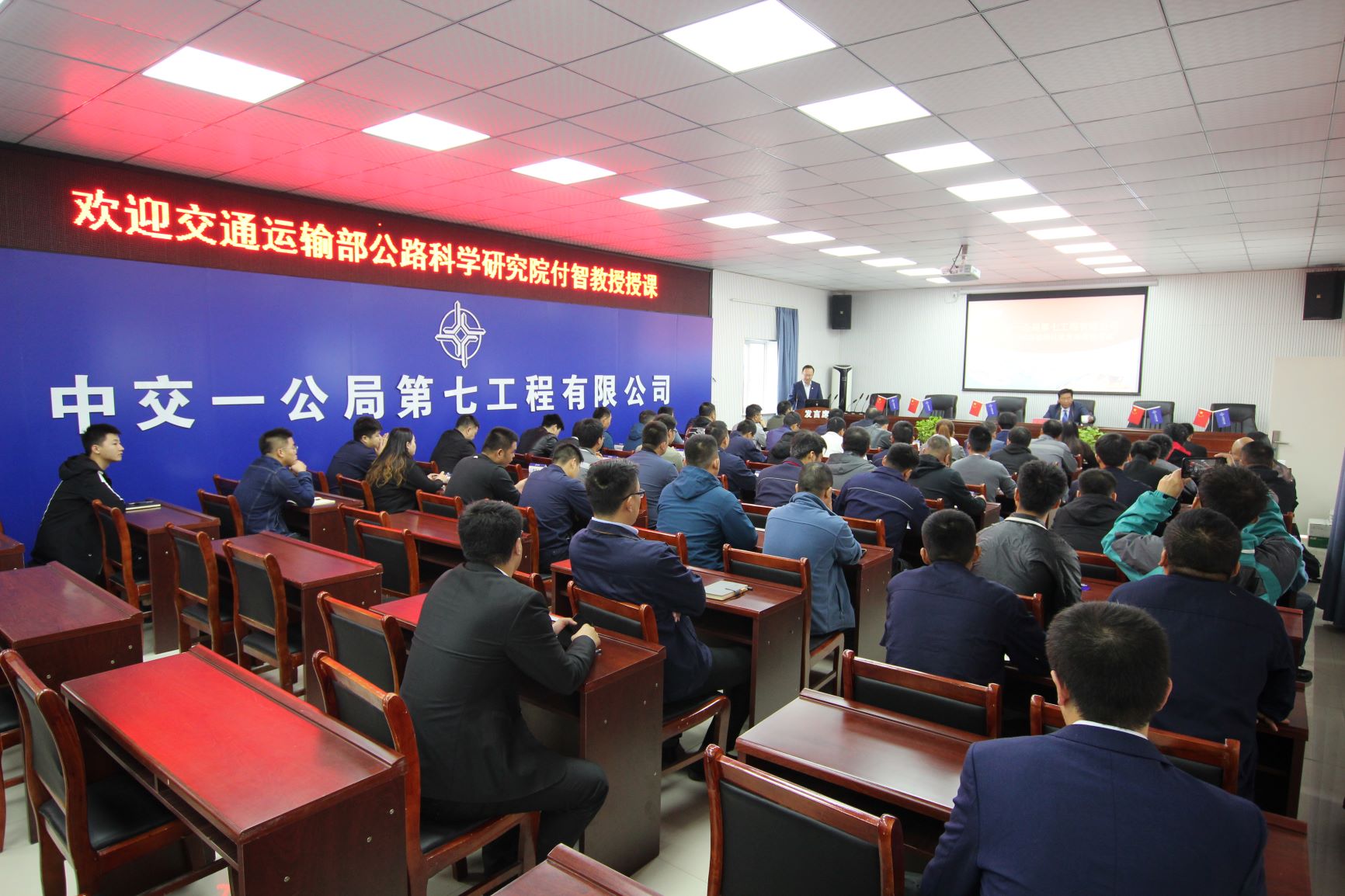 11月3日,公司举办“科技月”技术交流会,特邀交通运输部公路科学研究院研究员、博士生导师付智教授以“水泥混凝土配合比优化及外加剂质量控制、水泥混凝土前沿技术及研究方向动态”为题进行专题授课和交流。公司技术质量部、技术中心人员,周边项目总工程师,各项目试验室主任和试验检测人员参会。