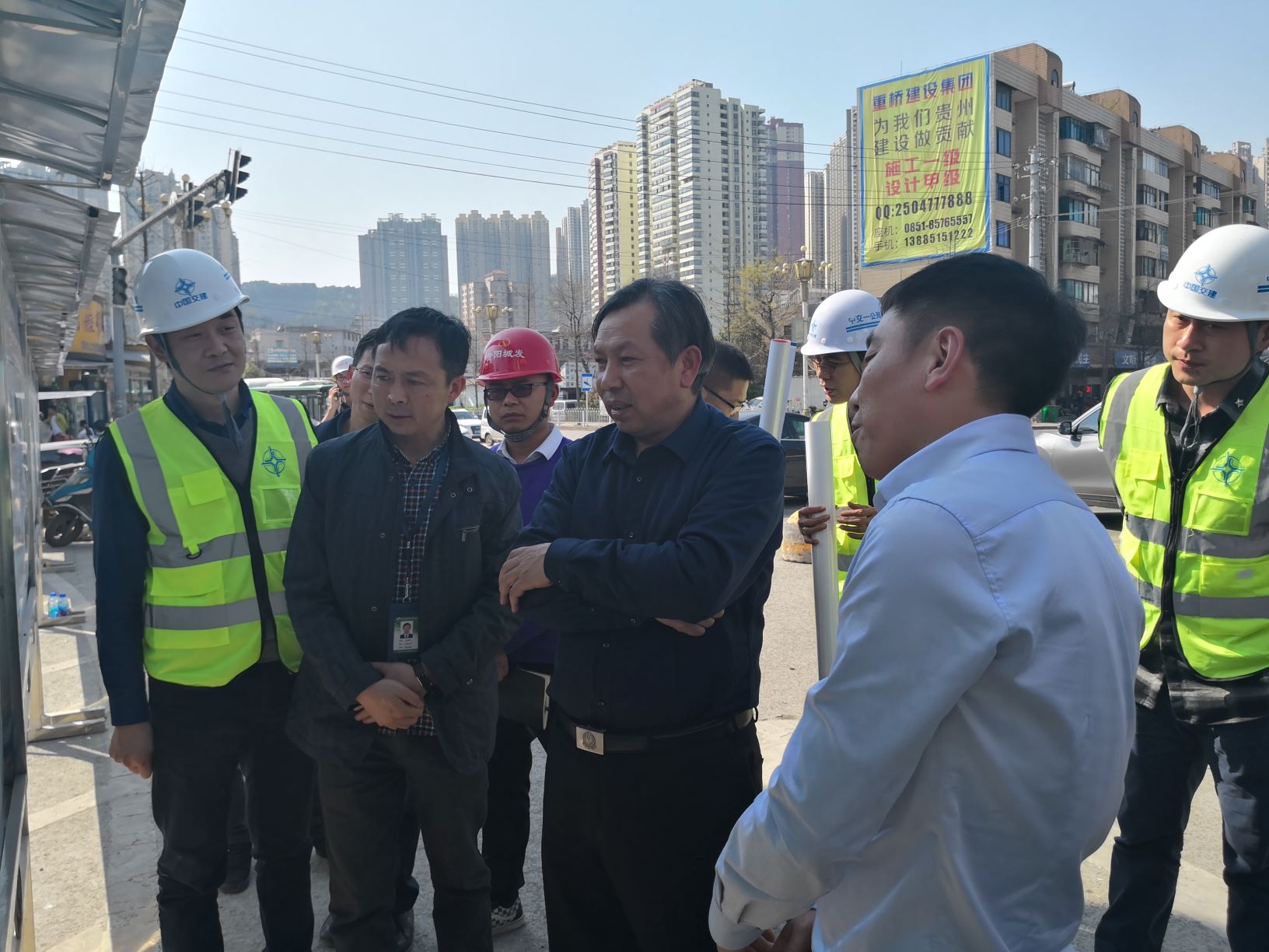3月20日,贵州高速公路集团副总经理旷光洪一行到贵阳花溪大道一标项目、人民大道六标项目施工现场检查指导工作。