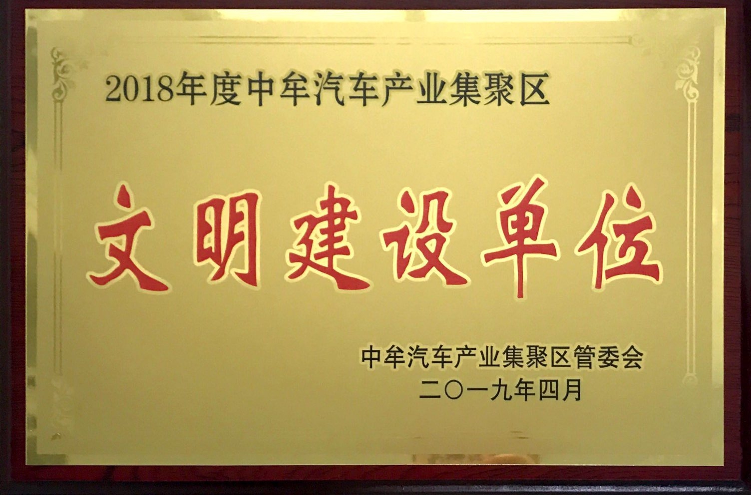 4月11日,中牟县广惠街项目荣获中牟汽车产业集聚区管理委员会2018年度“文明建设单位”荣誉称号。