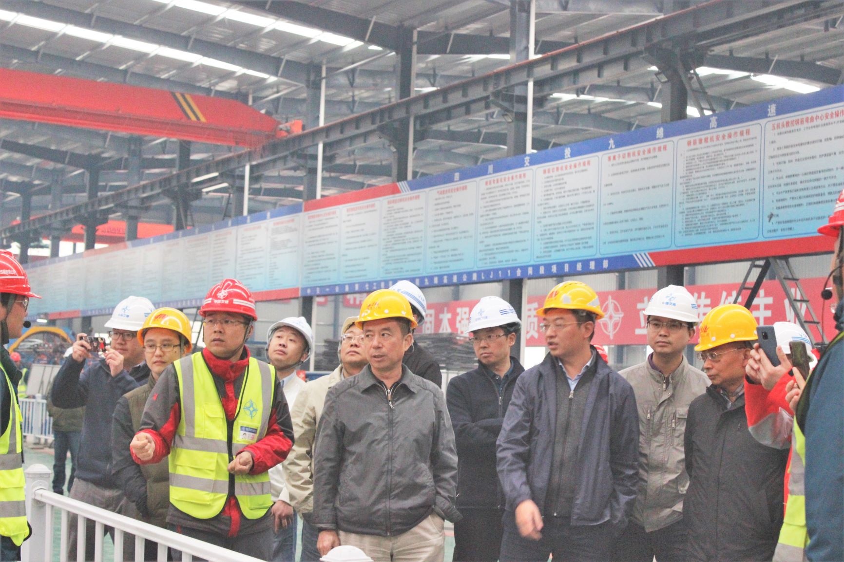 4月10日上午,成渝公司总经理甘勇义带领下辖成乐公司、蜀鸿公司、蜀南公司各级领导共40余人到九绵高速LJ11标钢筋加工场观摩。