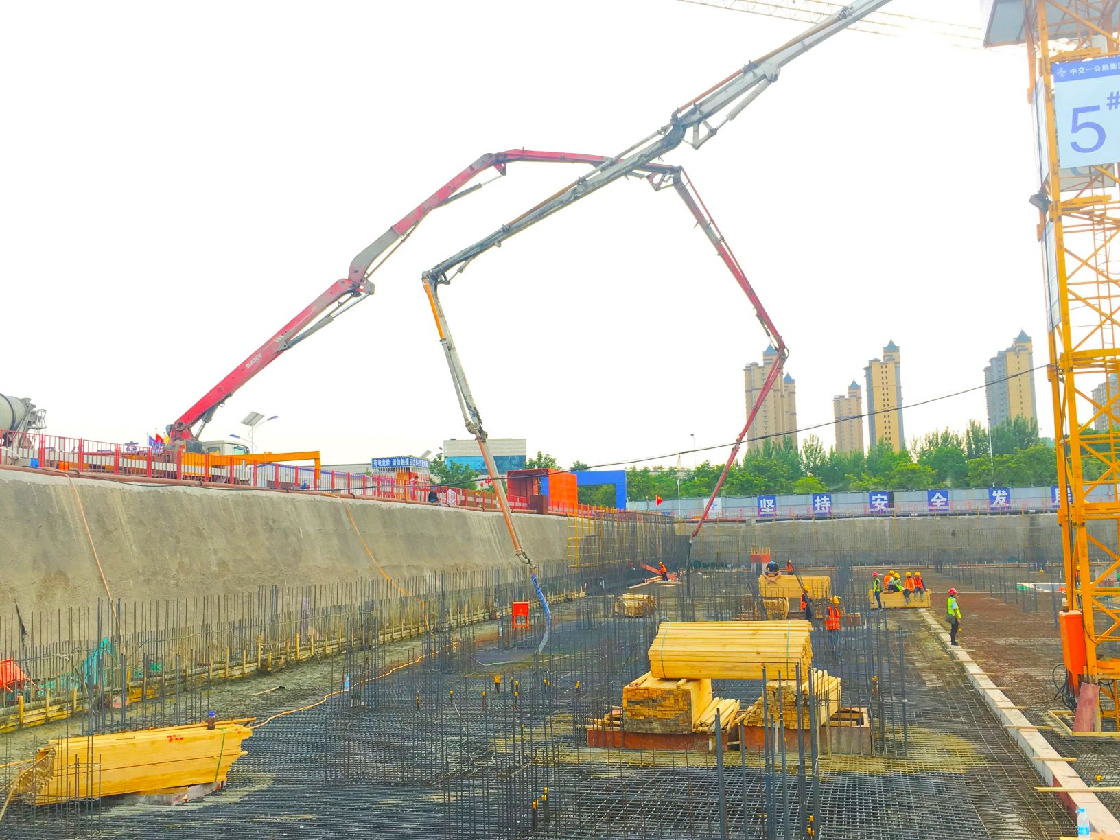 项目于2019年4月1日开工,4月20日第一块主楼筏板浇筑,历时42天全部浇筑完成。(张童辉)