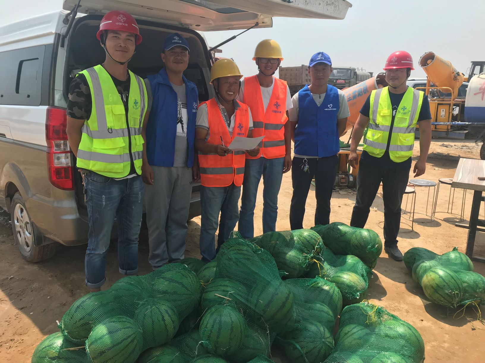 项目统一购买并向各队伍送去了绿豆和西瓜,并嘱咐施工队伍大食堂,全天候为工人们熬煮绿豆汤解暑。炎炎夏日送清凉,丝丝关怀入心田,一杯绿豆汤,一块西瓜……,这些温馨的小细节,无不反映项目对施工队伍工人们的关怀,让工人们倍感亲切与鼓舞。(王婧)