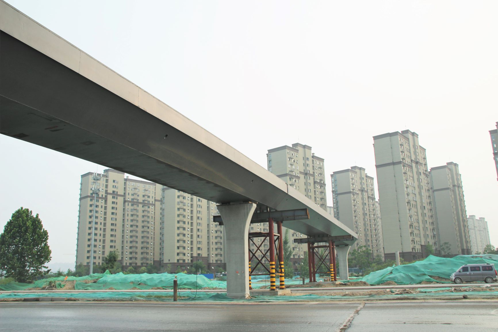 项目共有杨金路南天桥、文苑北路南天桥2座天桥,目前正在施工的杨金路南天桥主桥桥跨布置为38.5+42米连续钢箱梁,箱梁中心线处梁高1.734米。主梁桥面宽度为4.5米,桥面横坡为双向1.5%横坡,桥面纵坡亦为双向1.5%纵坡。(刘科雷)