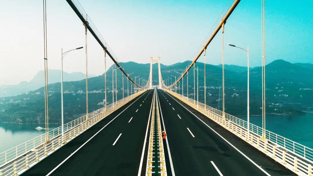 重庆万州至湖北利川高速公路项目(重庆段)驸马长江大桥是三峡库区最大跨度、一跨过江的首座千米级大桥,全长2030米,主跨1050米,为单跨钢箱梁悬索桥。