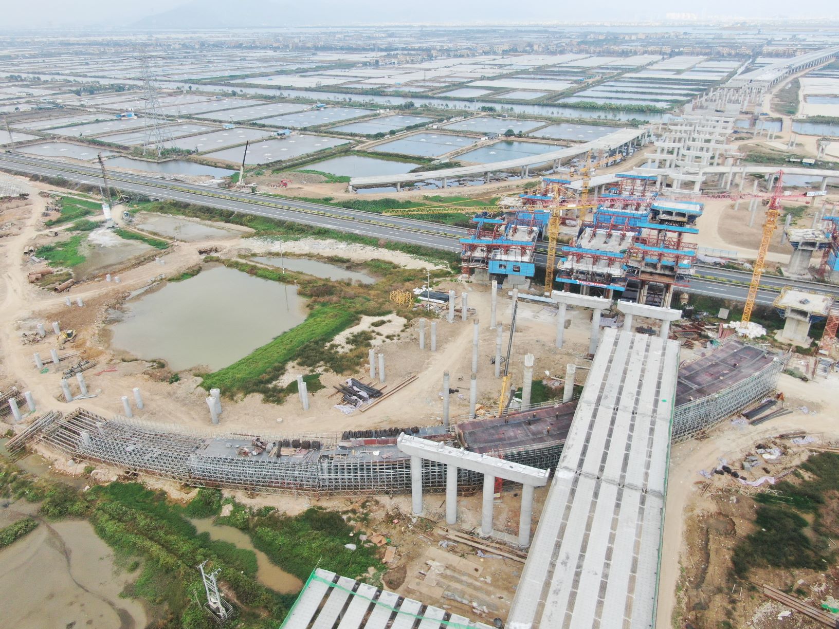 项目昭兴围互通式立交包括主线桥1座、匝道桥8座,其中主线桥长2.25公里、匝道桥8座共计4.35公里,现浇预应力混凝土连续箱梁共22联。