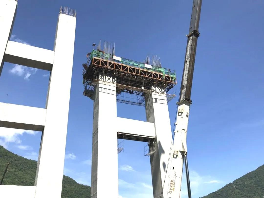 该系统将墩柱模板与柱系梁模板组合成整体,实现双墩与柱系梁的同步施工,且系统自带安全操作平台,施工柱系梁时,只需要安装底模,无需安装施工平台,降低安全隐患。与传统的翻模法相比,施工功效由2米/天提高到6米/天,成本费用大大降低。(谢保英)