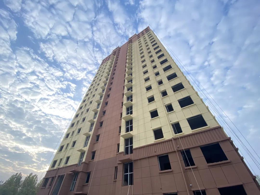 中牟安置房建设项目马顶堡社区9号楼完成外墙涂刷施工。
