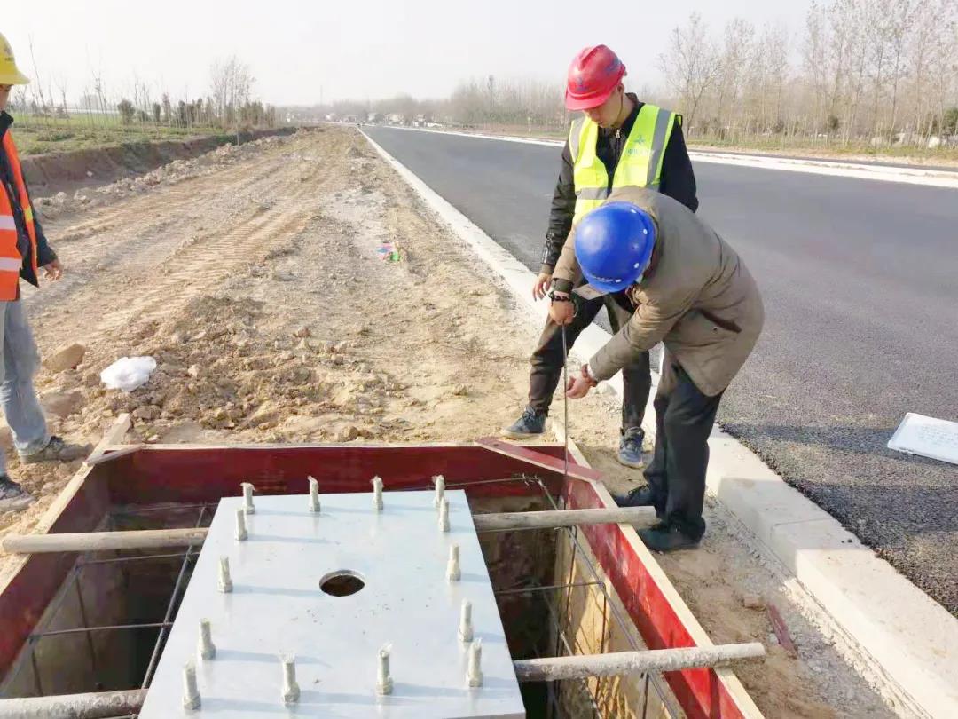 11月11日,商丘快速通道二分部交安工程首个标志标牌基础浇筑,标志着交安工程施工正式开始。