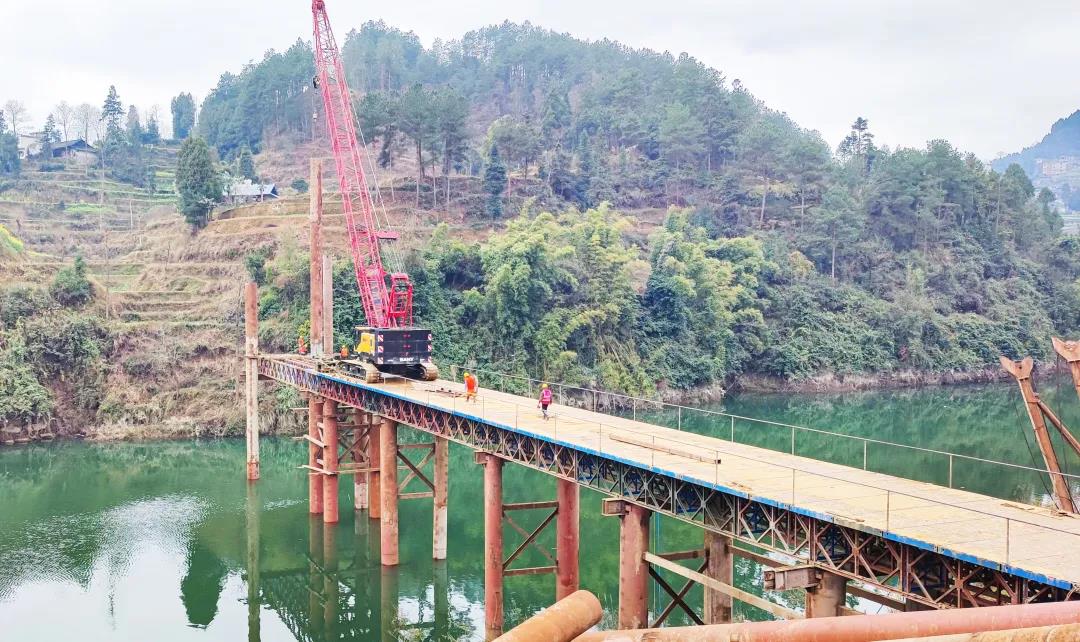 《深水硬岩区钢栈桥引孔施工工法》,该工法确保了贵州德余高速二标钢便桥栈桥在深水、硬岩环境下的稳定性,同时减少了辅助斜支撑钢管桩数量,降低了钢管桩整体回收难度,解决了钢管桩倾斜、栈桥及施工平台难以稳定等难题。使大桥比计划提前1个月实现贯通,为后续施工打开了局面,总计实现经济效益超220万元。