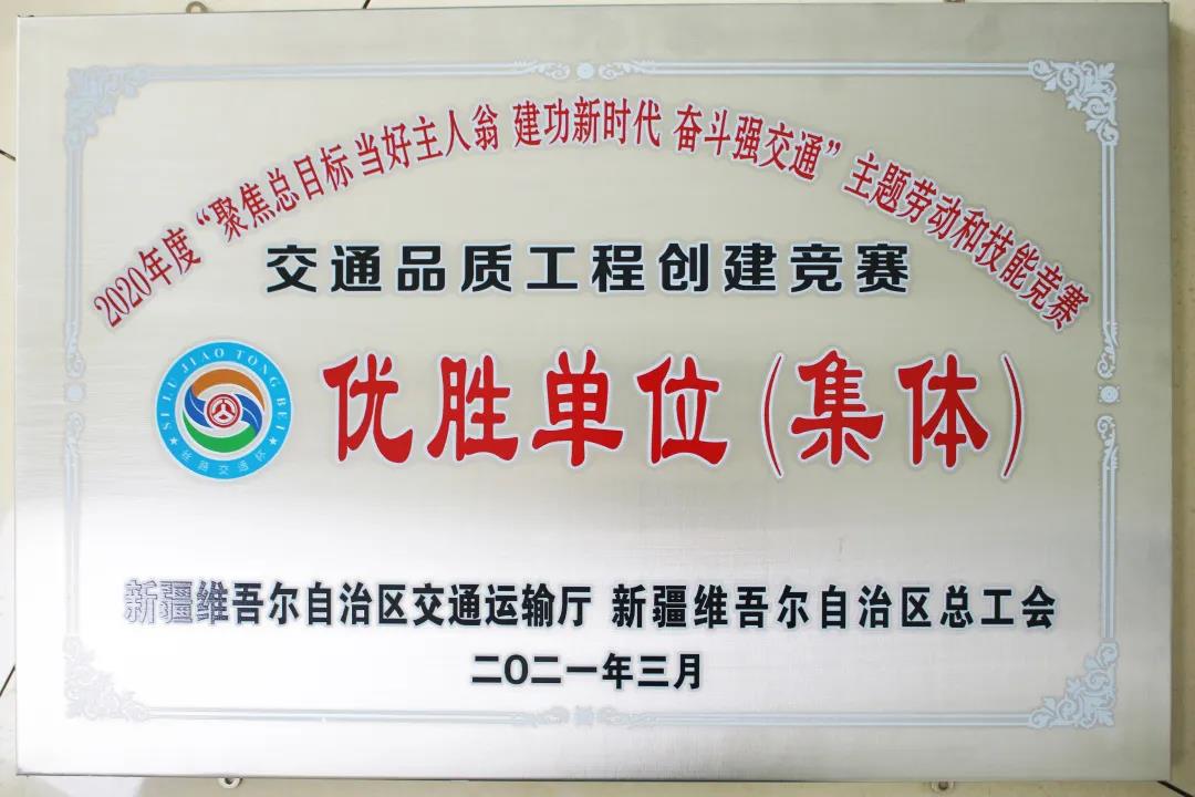 日前,新疆维吾尔自治区2020年度“聚焦总目标 当好主人翁 建功新时代 奋斗强交通”主题劳动和技能竞赛结果新鲜出炉,公司新疆G575土建三标荣获交通品质工程创建竞赛优胜单位和农民工技能竞赛优胜单位称号。