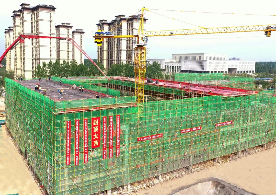 5月2日,开封市中意湖小学3号教学楼顺利封顶,标志着所有楼栋进入封顶倒计时。