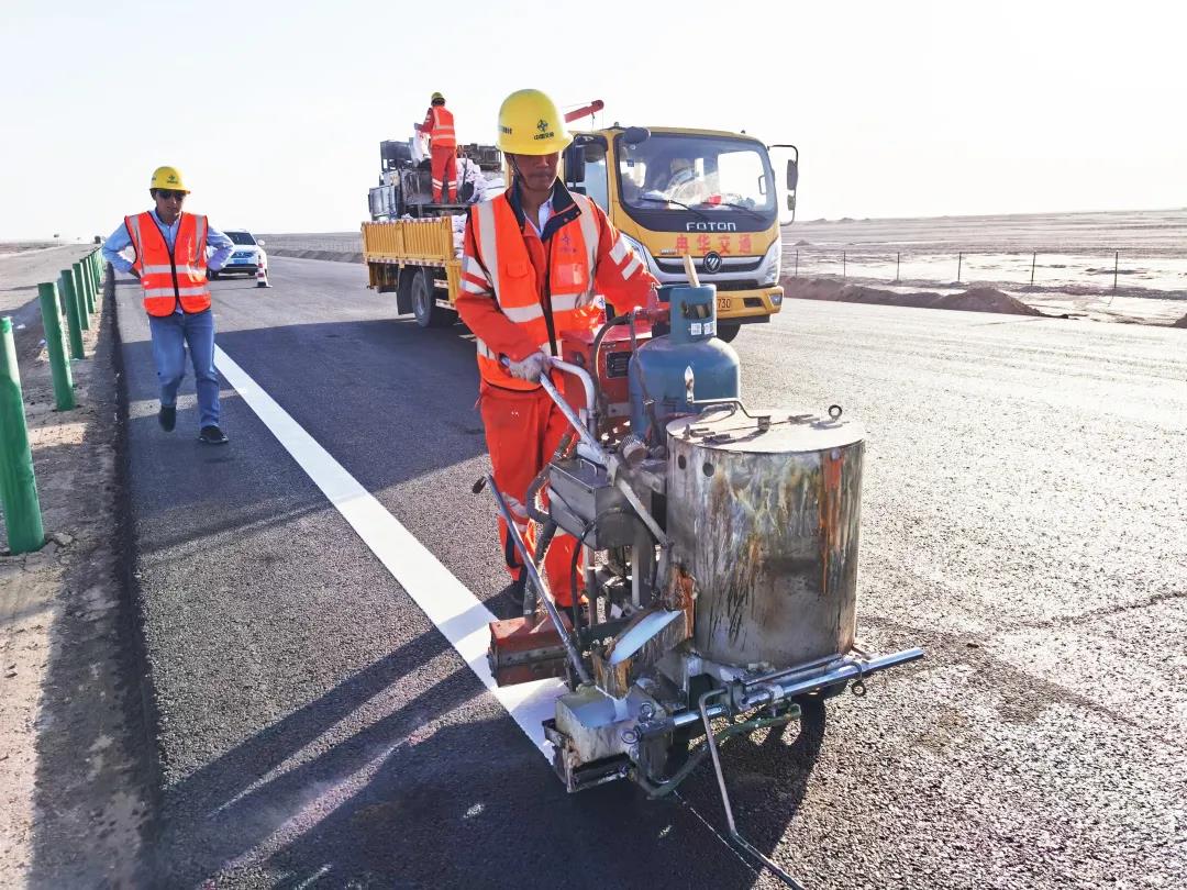 5月4日,哈密山北包交安项目开始施划标线,标志着交安工程全面开工建设。