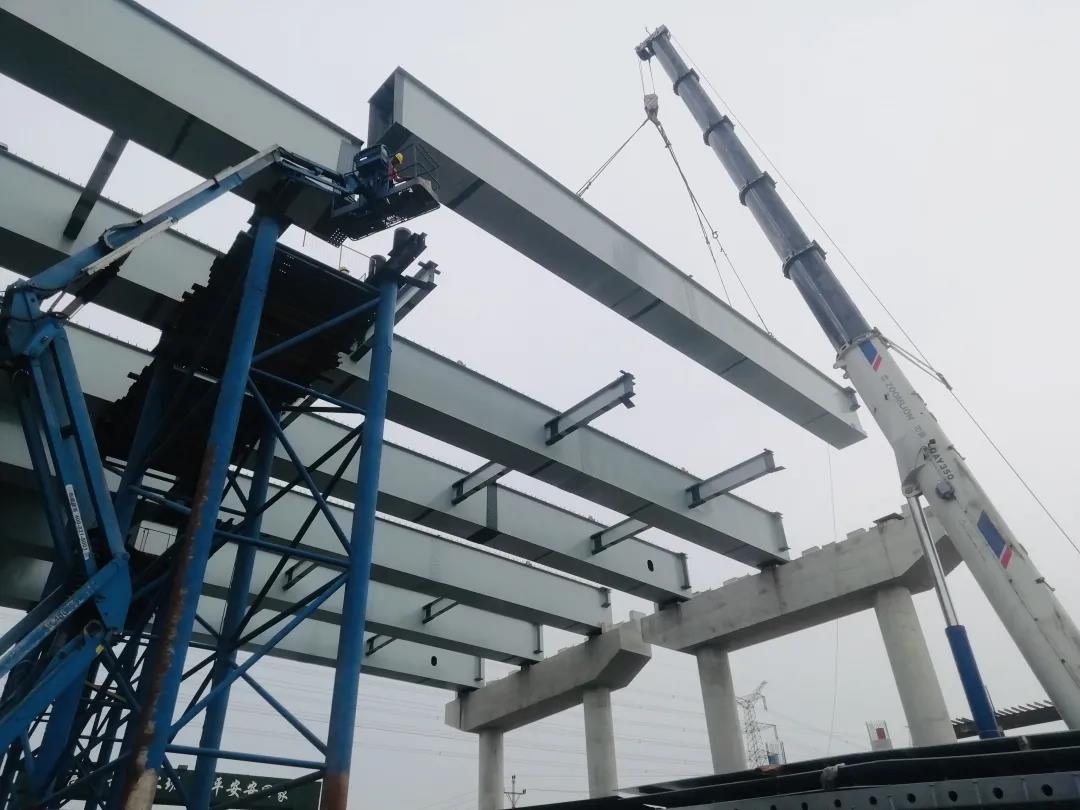 重庆江泸北线一分部堰塘湾大桥钢箱梁主梁完成顶推和吊装