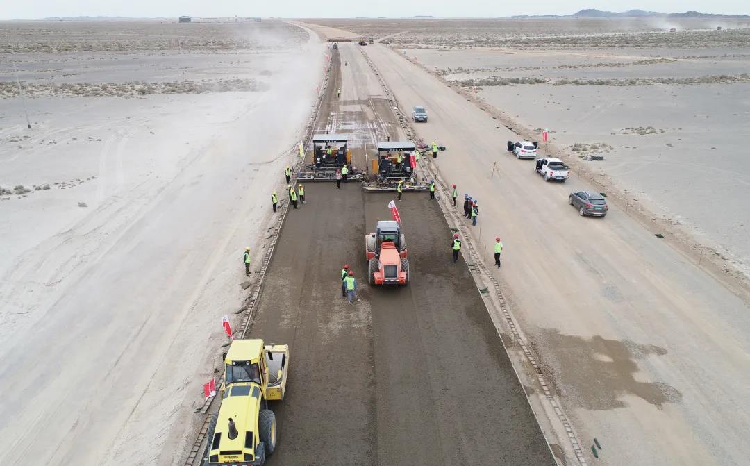 近日,新疆S519梧沙一标项目路面水稳基层试验段顺利铺设完成,正式进入路面工程施工阶段。