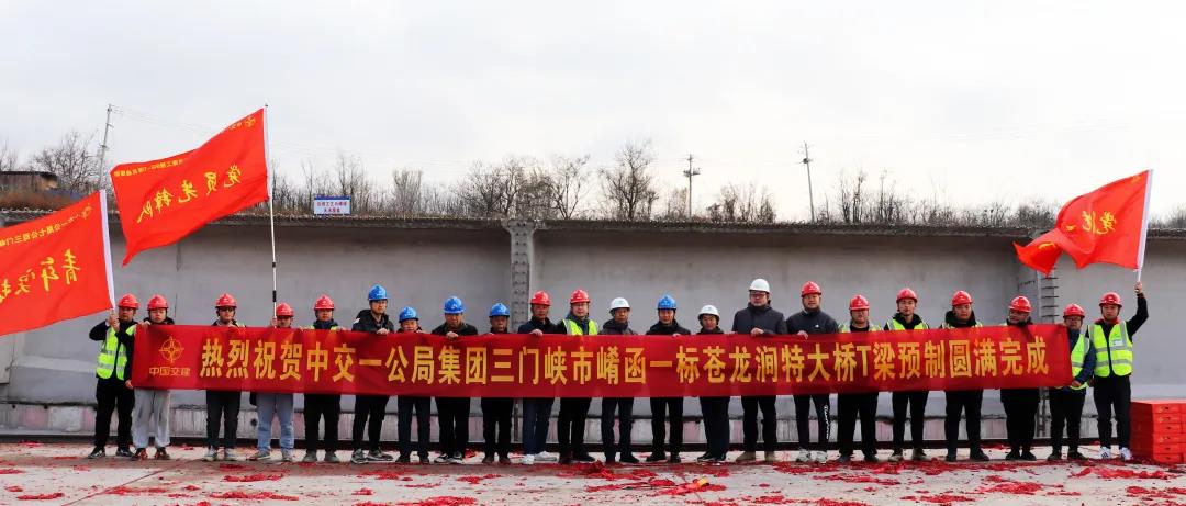 三门峡崤函一标全长5公里,主要工程包括苍龙涧特大桥、新桥隧道,以及道路、管道、机电交安等。其中苍龙涧特大桥长1259米,桩基242根,墩柱70根,50米T梁250片。此次预制任务的圆满完成,为后续架梁和桥面施工任务提供了保障,也为苍龙涧特大桥贯通打下坚实的基础。