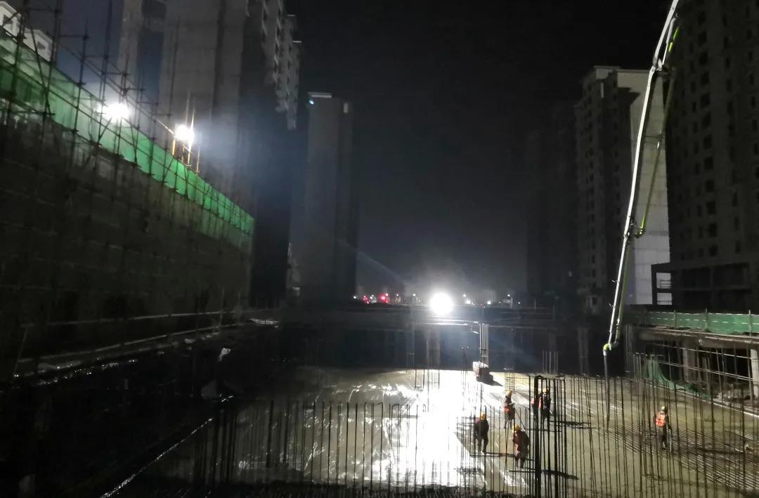 12月5日,中牟黄河滩区项目C地块地下室车库筏板基础全部浇筑完成。