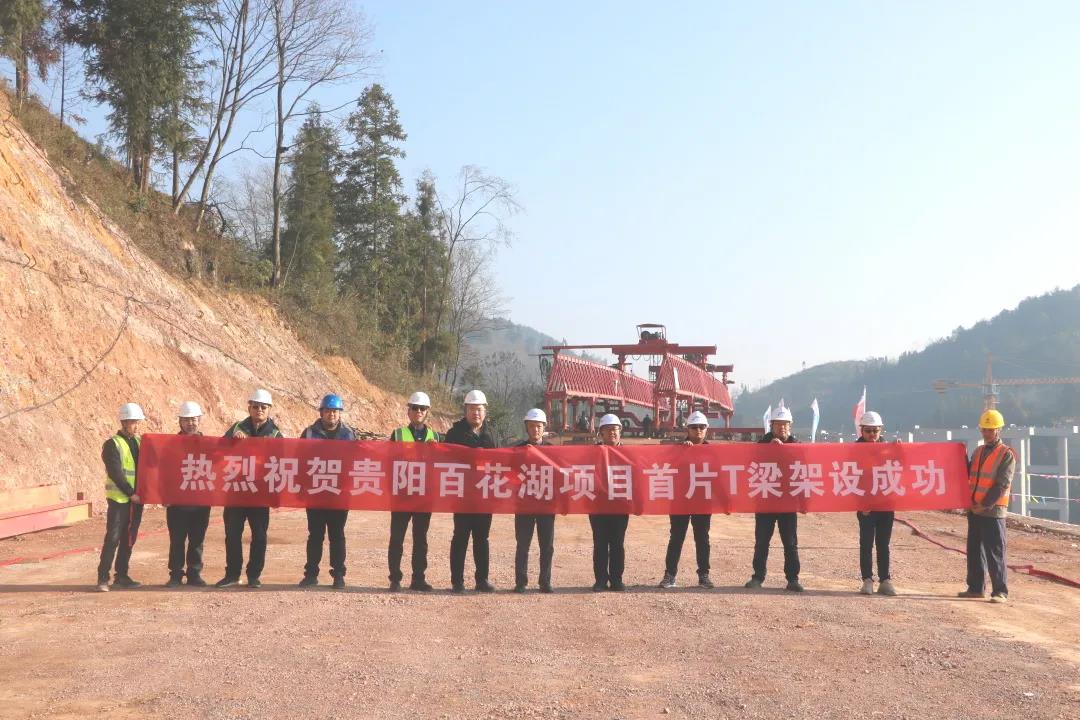 12月23日,贵阳百花湖项目首片预制T梁架设完成。