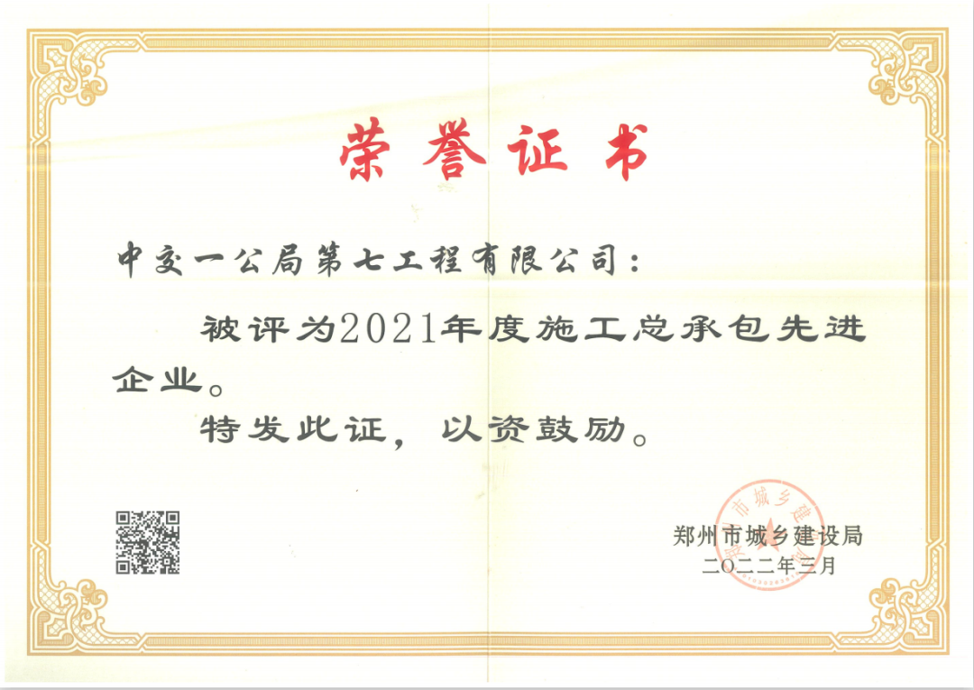 近日,郑州市城乡建设局对2021年度建设系统先进单位、先进企业和先进个人进行表彰,公司连续四年被评为“郑州市施工总承包先进企业”,公司党委书记、执行董事张国友连续四年被评为“建筑企业优秀经理”,白生利被评为“建筑业企业优秀项目经理”,夏天被评为“建设工程质量管理先进个人”和“建设工程安全管理先进个人”。