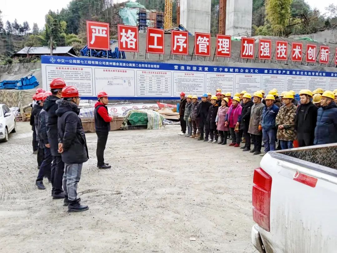 2月7日,贵州德余高速二标组织白家湾大桥到岗人员,开展春节复工现场安全教育及复工复产自查工作。
