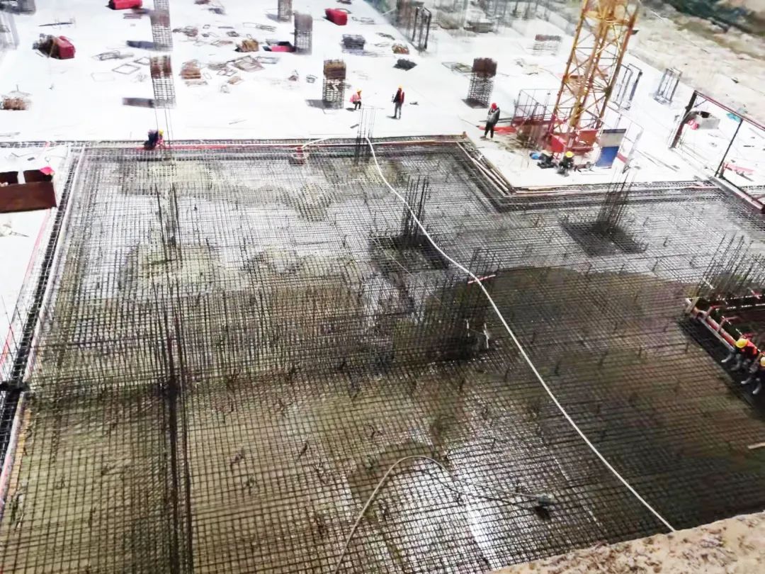 2月20日,中牟县人民医院二期病房大楼项目7区车库筏板开始进行混凝土浇筑。