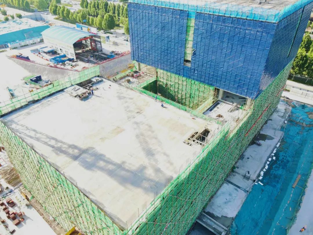 5月16日,随着最后一方混凝土浇筑完成,总部基地项目裙楼主体结构正式封顶。