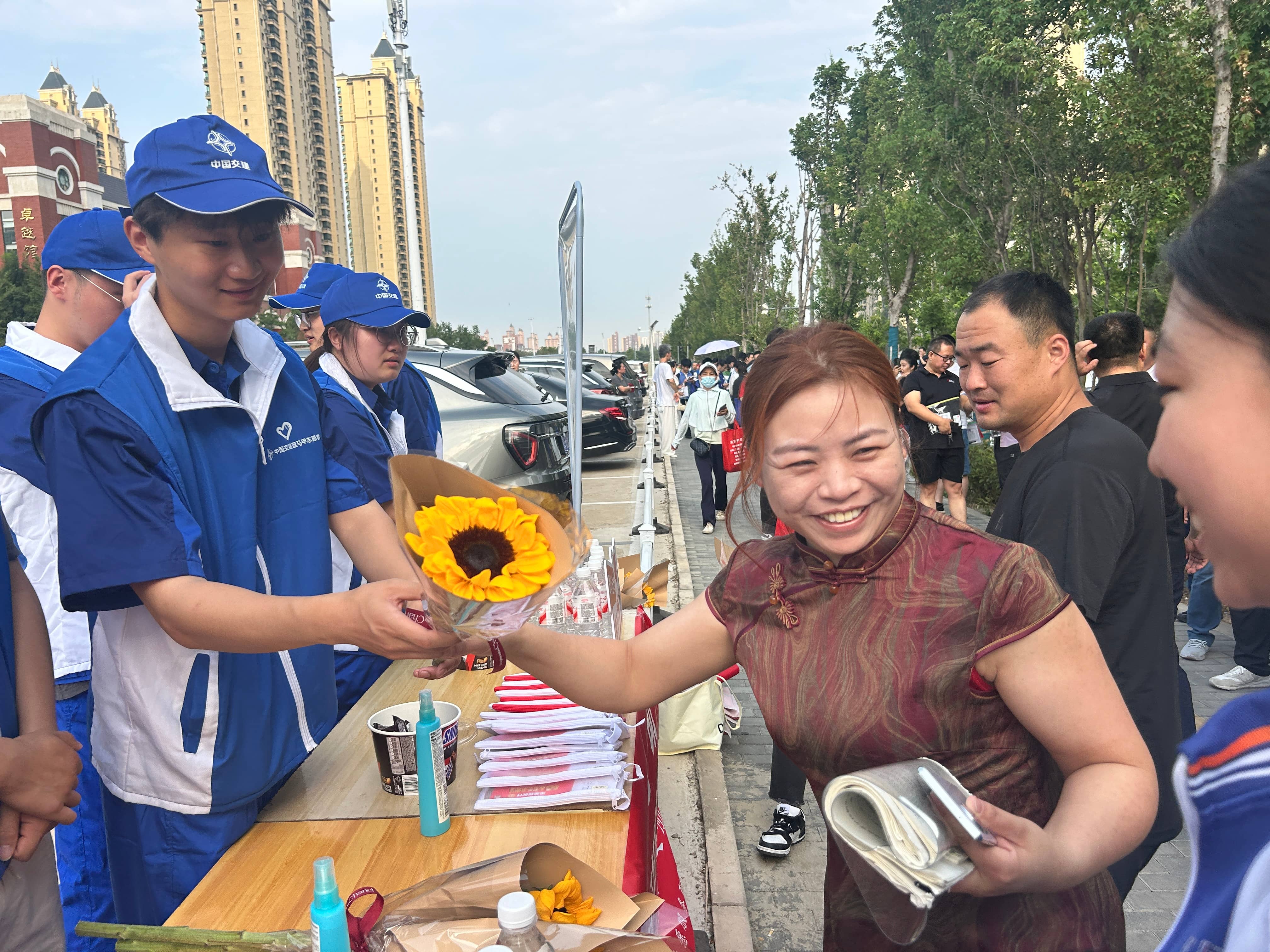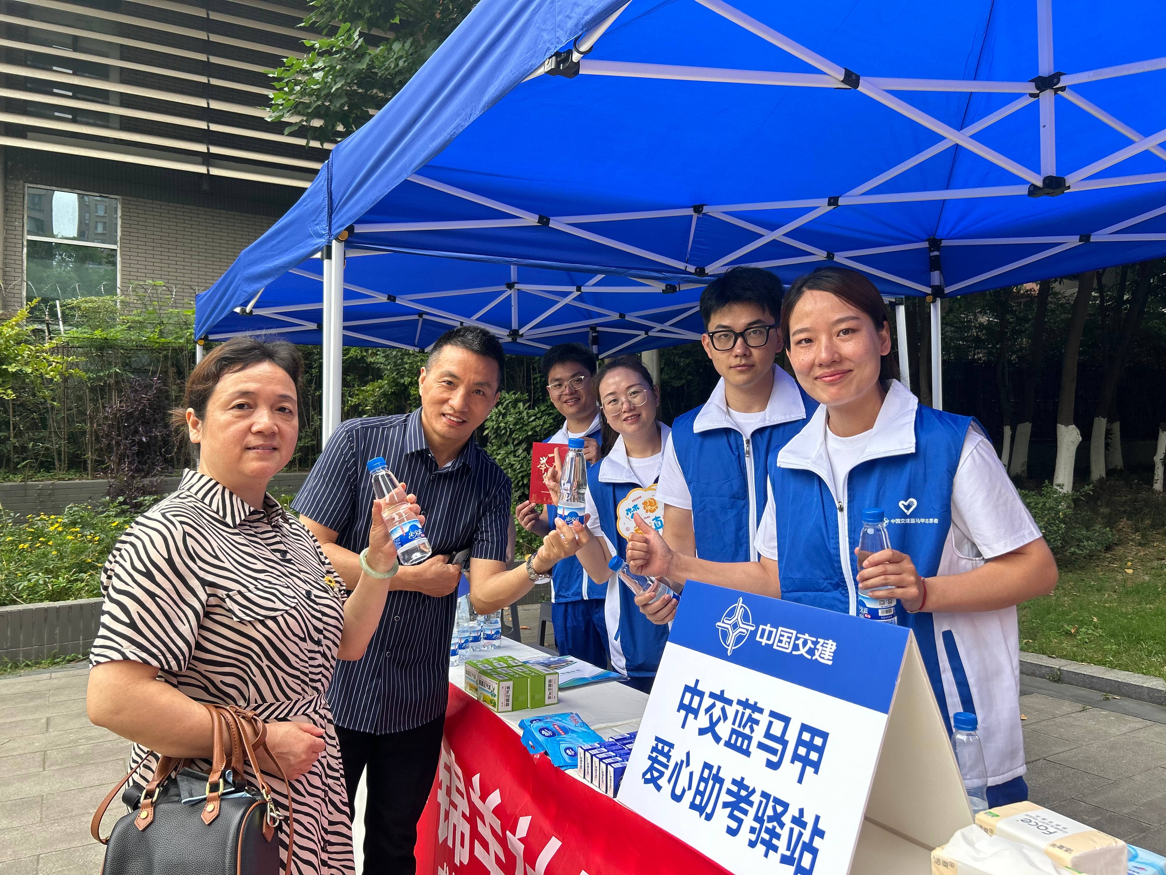 十年寒窗磨一剑,今朝出鞘试锋芒。2025年高考期间,电气化公司“蓝马甲”志愿者再度集结,在高考考点架起“爱心助考驿站”。一瓶水、一支笔、一句暖心的鼓励——志愿者们以“零距离”服务为学子护航,用一抹“中交蓝”传递央企温度,让考场外的守望成为社会共筑希望的暖心风景。