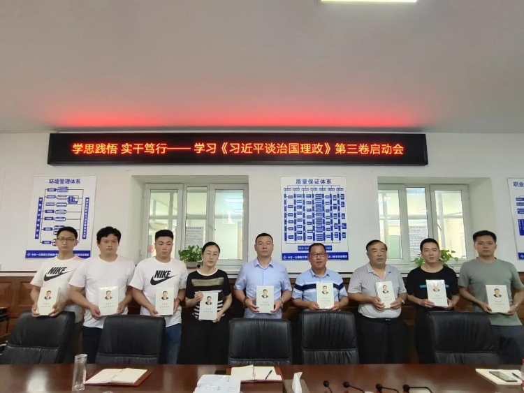 哈尔滨地铁项目TJ2-3标召开了学习启动会,项目党员以及中层以上干部参加,传达了上级党委关于认真组织学习《习近平谈治国理政》第三卷的通知,并通过PPT的形式对书籍的编辑框架、逻辑结构、重大思想观点等进行了综合解读。