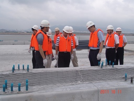 2011年10月11日,广东省交通厅何忠友厅长及有关领导在业主、总监、施工单位领导等陪同下视察二合同机场特大桥。
