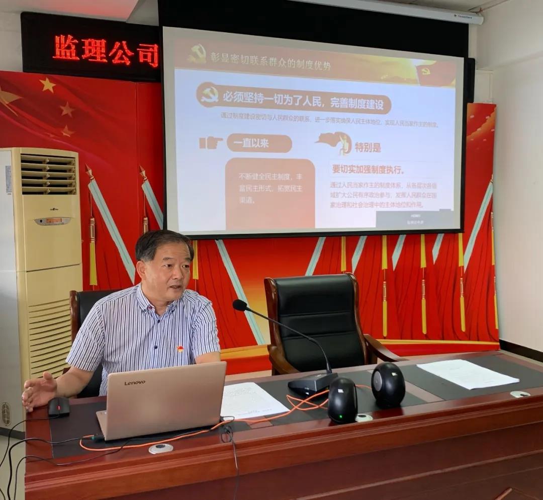 为纪念建党99周年,进一步激励党员干部坚定理想信念,展现公司各级党组织及全体党员锐意进取、开拓创新的精神风貌,营造深入学习贯彻习近平新时代中国特色社会主义思想、党的十九届四中全会和“两会”精神的学习氛围,根据集团公司相关要求,结合公司实际,经党委研究,制定了《监理公司“党课开讲啦”活动实施方案》,该活动于7月15日下午召开启动会并进行党课“第一讲”。启动会由公司党办主任于美书主持,公司党委书记、总经理雒玉军担任“第一讲”的主讲人,全体党员通过现场会、视频会形式聆听党课。