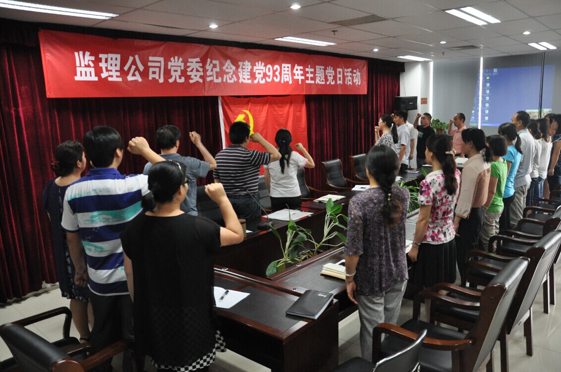 为庆祝中国共产党成立93周年,监理公司党委积极开展“知党、爱党、跟党走”主题党日活动,公司领导高度重视,要求公司各党支部积极开展内容充实、丰富多彩的党建活动。活动中,公司机关党支部召开党支部会议,确立了一名入党积极分子,全体党员重温了入党誓词;集中学习了人民日报刊登的《中央组织部追授4名同志“全国优秀共产党员”》,号召公司全体共产党员和广大干部向王胜、于海河、毕世祥、文朝荣同志学习,并把学习他们的崇高精神转化为追求事业、热爱本职工作的自觉行动,努力创造一流业绩。机关党支部和房建市政党支部还组织党员观看了《建党伟业》,重温了那段激动人心的历史,再次感受革命先辈在那段峥嵘岁月里的热血与激情,感受他们对共产主义事业崇高的信仰和不懈的追求。其他党支部也都开展了重温入党誓词等活动。