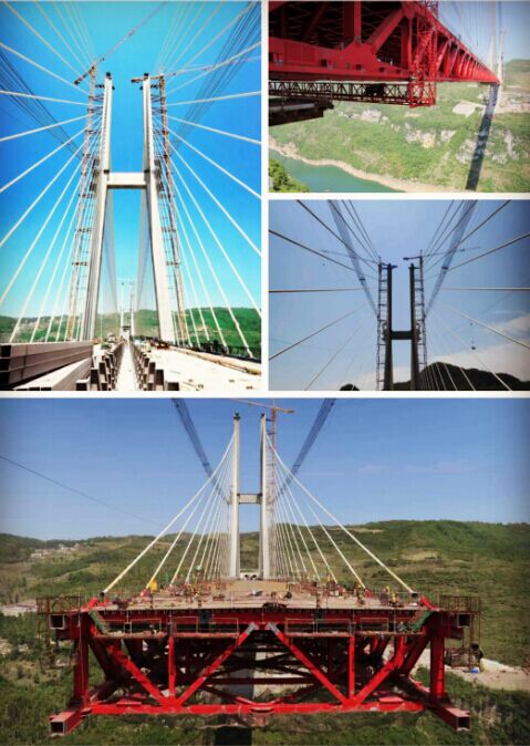 由于受运输环境及施工场地的限制,运用缆索吊安装钢桁梁,这是在斜拉桥施工中首创采用缆索吊进行主梁安装,同时主跨800米、吊重350吨的缆索吊在国内外是罕见的。主梁在场地内拼装成标准16米节段后平移至塔下,采用缆索吊进行吊装安装,不仅加快了进度,也是对斜拉桥施工工艺的大胆尝试。