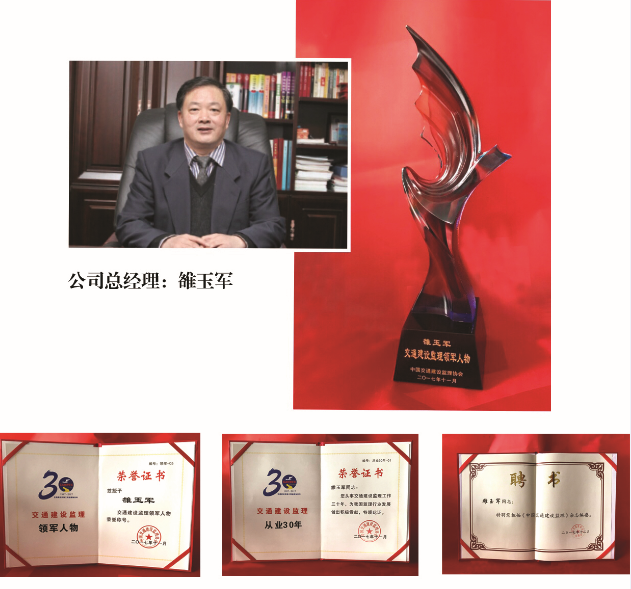 近日,监理公司在交通建设监理30周年表彰活动中荣膺“交通建设监理行业发展贡献企业”荣誉称号,公司总经理雒玉军、项目总监赵光分别荣获“交通建设监理领军人物”、“交通建设优秀人物”荣誉称号。