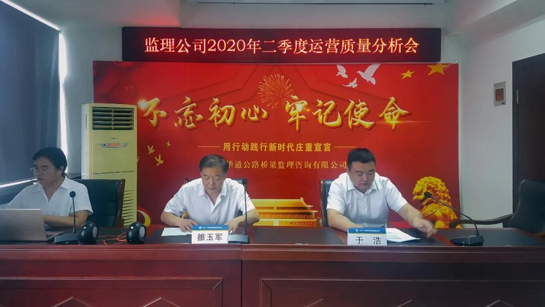 近日,监理公司2020年二季度运营质量分析会暨运营卫士在行动会议在京召开,各项目视频参会。公司党委书记、总经理雒玉军出席会议并讲话,副总经理于浩对二季度运营工作进行了总结,深入剖析了公司上半年运营质量情况,部署下半年工作。经营科对运营卫士在行动第二阶段工作情况进行了全面、系统的总结。