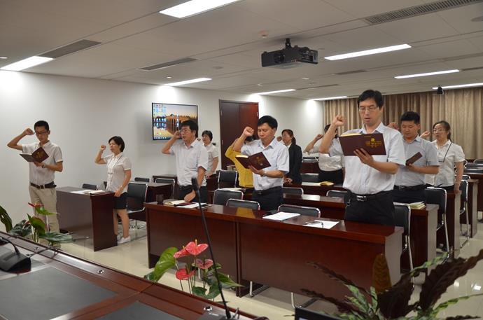 学习会以“两学一做”为主题。为促使机关党员干部能切实落实“两学一做”,本次中心组学习将参会人员扩大为机关全体党员干部。“我志愿加入中国共产党……”随着党群工作部人员的洪亮领誓,参会全体党员干部重温了入党誓词,重温当年入党的决心和信念,进一步强化党的观念,增强党员意识,自觉遵守党的纪律,再一次对自身鞭策和激励,确保做一名合格的共产党员。