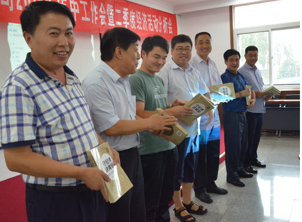 7月21号正值北京建筑分公司召开2016年年中工作会暨第二季度经济活动分析会之际,各项目经理书记、总经济师、总会计师及机关领导、科室负责人集聚一堂。趁此机会,公司纪委烘托氛围,深入推进廉政宣传月活动的开展,公司纪委书记鞠红俊向各项目赠送了廉政书籍《守纪律 讲规矩》。