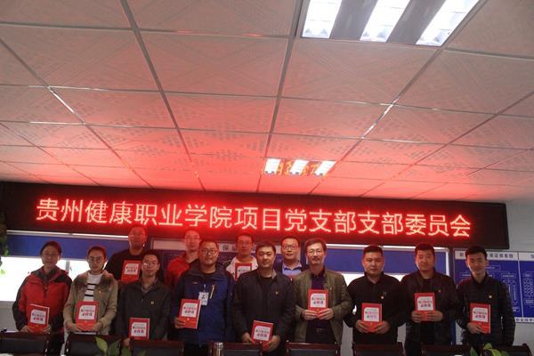 为认真贯彻落实国有企业党的建设工作会议和习近平总书记“十九大”重要讲话精神,进一步加强改进基层党组织的党建工作,11月11日上午,贵州健康职业学院项目党支部召开党员大会,由项目经理王刚和项目副书记陈进为项目部所有党员颁发“做合格党员必修课”图书,并为所有党员佩戴党徽。