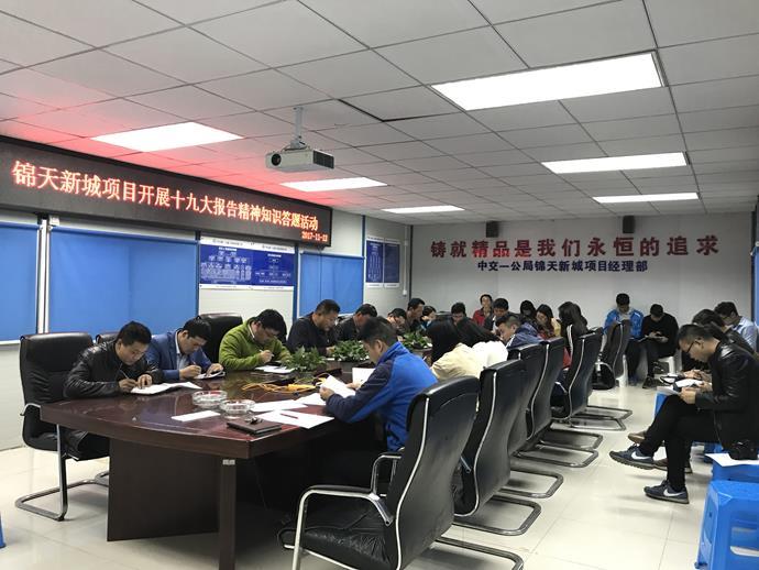 11月份以来,锦天新城项目紧跟局、公司党委部署,以多种形式迅速掀起了学习贯彻十九大精神的热潮。