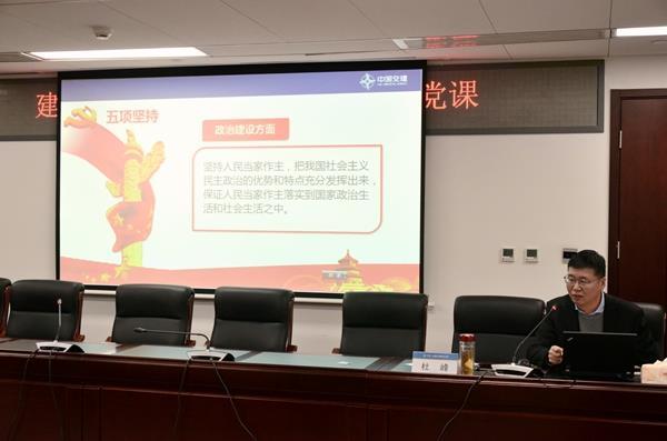 11月30日,公司副总经理杜峰为机关全体职工讲授题为《抢抓新时代“五位一体”总体布局机遇,推动公司市场投资开发工作新发展》的党课。