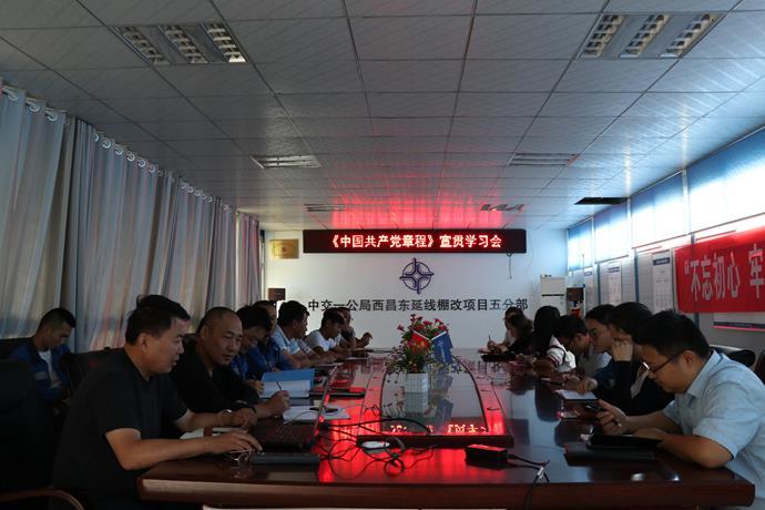 为深入学习贯彻党的十九大精神和习近平新时代中国特色社会主义思想,落实“两学一做”学习教育常态化制度化,6月15日,西昌项目党支部组织全体党员和入党积极分子对《中国共产党章程(修正版)》进行深入学习。