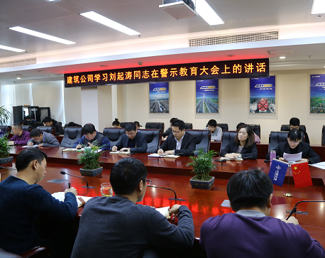 紧跟廉政工作步伐,落实管党治党责任,贯彻中交集团警示大会精神,深化将办案成果转化成企业效能的主题思想,近期建筑公司纪委组织机关和各项目深入学习了《刘起涛同志在中交集团暨中国交建警示教育大会上的讲话》,机关会议由建筑公司党委副书记、纪委书记鞠红俊主持,监察审计部部长强凤荣为大家宣读了相关文件,公司在家领导和机关全体员工参加了学习。公司各项目也组织了专题学习活动。