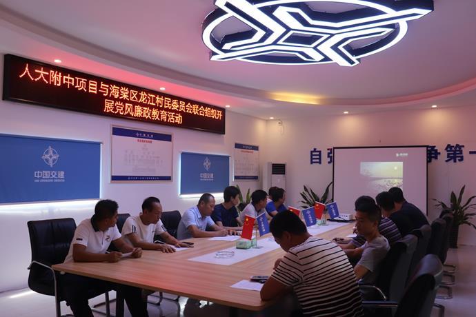 为深入贯彻落实全面从严治党要求,发挥反面典型警示教育作用,增强广大领导干部廉洁从业意识和拒腐防变能力,人大附中项目积极响应公司纪委廉政宣教月活动,在4月28日与海棠区龙江村民委员会联合开展以党风廉政建设警示教育活动。