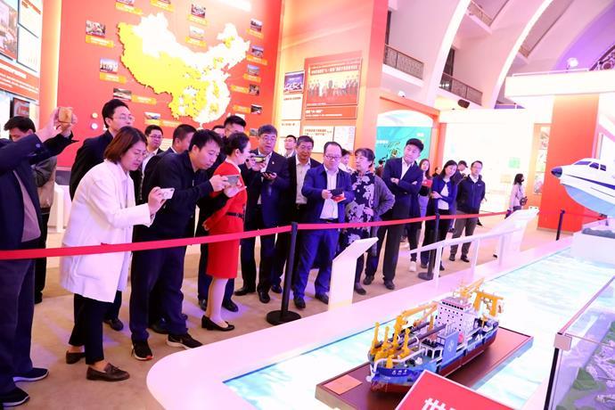 当参观到中国交建天鲲号、港珠澳大桥时,公司领导班子成员激动地与讲解员进行了深入交流,与在场参观者分享了中交建设的实际,自豪感、成就感溢于言表。