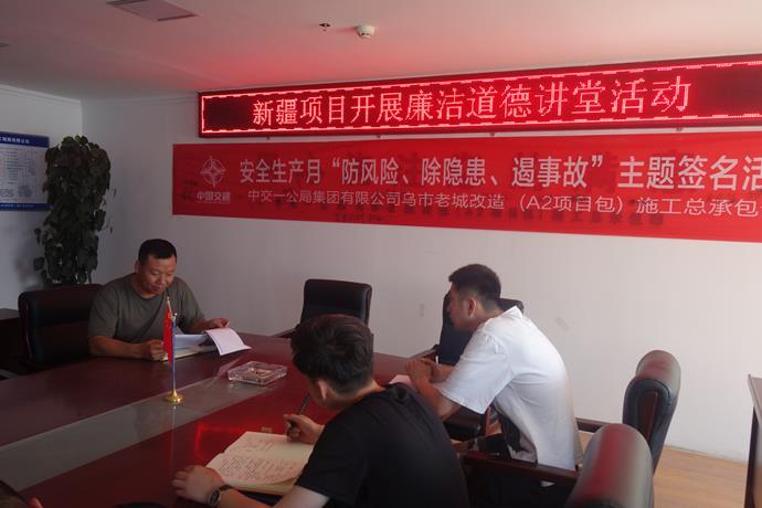 7月13日,新疆项目组织开展廉洁道德讲堂活动,活动由项目总工程师孙国良主持。此次活动分为三个环节,分别是:由项目总工程师向参加活动的员工宣读《中国共产党纪律处分条例》;参加活动员工观看反腐倡廉影片《在路上》;参加活动员工讲述身边的反腐倡廉故事、家里的家风家训故事。