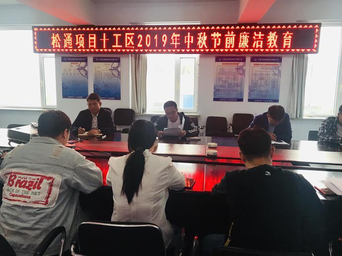 松通项目十工区经理部开展“中秋”节前廉洁教育活动