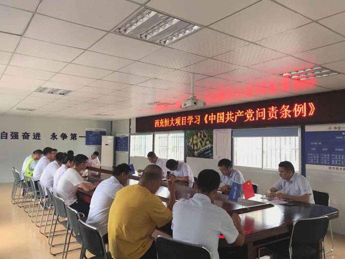 为加强项目党风廉政建设,提高领导干部防腐拒变的责任意识,西充恒大项目于9月11日由项目经理王建东带领项目全体员工一起学习了修订后的《中国共产党问责条例》。